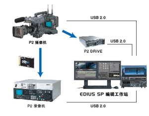EDIUS SP(帶HD擴展件)通過EDIUS Broadcast選件可直接編輯P2卡上記錄的MXF數據格式,可直接連接P2設備,使用后臺復制模式,將所需的素材快速調入EDIUS NX非編工作站進行實時編輯和輸出,并支持單個文件的多卡導入,編輯的結果可直接回寫到P2存儲卡中。全面支持P2設備的編碼格式:DVCPRO、DVCPRO50、DVCPROHD、AVC-Intra*。