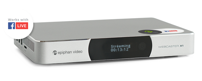 使用Epiphan Webcaster X1?將您的高清攝像機流式傳輸到您的Facebook時間軸,事件表,分類組或頁面中。它可與任何攝像機,混音器或其它具有HDMI?輸出的設備配合使用。