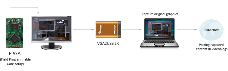 由于嵌入式應(yīng)用專門集成電路(ASIC)模塊,更小的尺寸和系統(tǒng)的安全性,重新定位和有效轉(zhuǎn)型的FPGA是相當(dāng)有吸引力的。 FPGA開發(fā)過程中選擇Epiphan圖像采集卡(如VGA2USB LR)實現(xiàn)上述目的,這有助于程序員處理可能面臨的問題。為了防止源代碼不可用的情況,原始圖形應(yīng)不可移動或圖形元素應(yīng)該被移植到另一個平臺,VGA2USB LR從舊系統(tǒng)捕捉高分辨率圖形,并在另一個系統(tǒng)中創(chuàng)建。