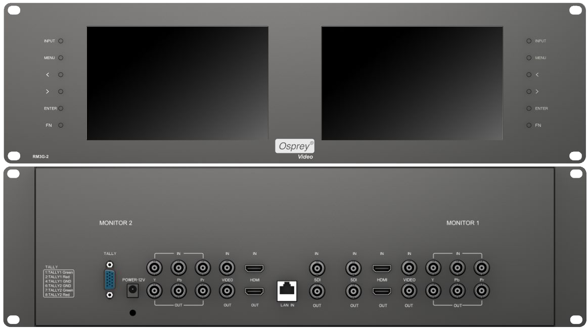 RM3G-2是雙機架式監(jiān)視器,支持SDI,HDMI和模擬視頻輸入以及TALLY。 為所有輸入提供循環(huán)輸出。.