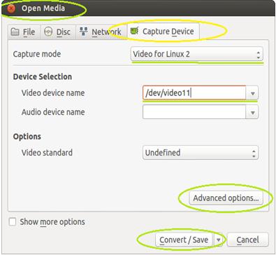 Device捕獲設備選項卡,選擇您的視頻設備,在Capture Mode采集模式中選擇Video for Linux2