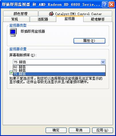 7. 若想采集到更高幀速率的視頻,可將信號源的“屏幕刷新頻率”改為75赫茲或更高如下圖示