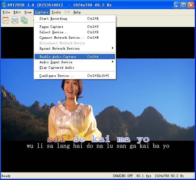 2. 單擊捕獲工具用戶界面的“Capture”菜單下“Enable Audio Capture”選項,啟用采集音頻功能。