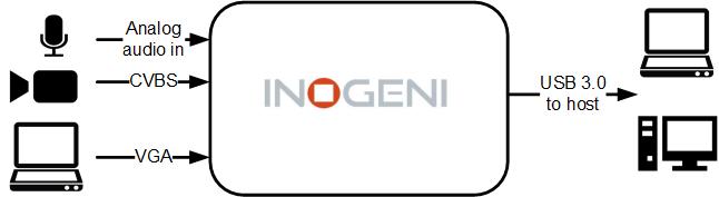 INOGENI VGA / Component / CVBS to USB 3.0 Converter是使用VGA,分量或CVBS輸出的音頻捕獲未壓縮視頻的最簡單可靠的工具,用于PC,用于錄制,編輯,視頻會議和流媒體應用。不需要安裝驅動程序,它將適用于所有主板和USB 3.0芯片組。它具有VGA HD15輸入,NTSC / PAL輸入,線路立體聲模擬輸入和USB 3.0輸出,并支持高達1080p60的SD和HDTV視頻格式以及大多數計算機圖形格式。尺寸緊湊,直接由USB 3.0端口供電,轉換器是實用且易于使用的USB 3.0捕獲解決方案。它與Windows,Mac OSX,Linux和Android操作系統兼容,符合UVC標準,因此可與所有DirectShow兼容的軟件配合使用。轉換器支持高達60 fps的1080p分辨率。所有SD和HD分辨率信號通過USB 3.0轉換為4:2:2 ,8位色彩空間。線路立體聲模擬音頻輸入輸出為雙通道LPCM,配有USB 3.0電纜。
