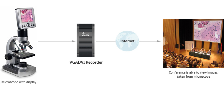 使用VGADVI Recorder,可以方便的完成通過顯微鏡對樣品圖像的采集,檢索和記錄。你需要留意的是你的顯微鏡是否有一個DVI或VGA接口。該系統可以從顯微鏡錄像并通過互聯網共享這些內容。被用來進行科學研究的圖像必須是非常準確的。使用支持分辨率高達1920x1200高清晰圖像的捕捉器VGADVI Recorder是一個不錯的選擇。無論在何處,觀眾只需要一臺有瀏覽器或媒體播放器的電腦和投影儀,圖片都可以直播給觀眾。此外,視頻流還會被推送到一個服務器并被準確地記錄,以供將來從遠程位置回放。VGADVI Recorder具有簡單而直觀的用戶友好的Web界面以供使用,可以滿足用戶在各個層面進行圖像采集的需求。