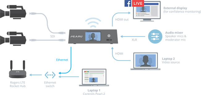 更好的是,Anil可以創建自定義的多機位布局,并使用Pearl-2的實時切換功能在布局之間進行實時流式傳輸。 結果是一個高度動態的Facebook直播 –